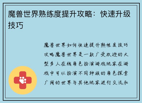 魔兽奥达奇战刃如何升级 魔兽奥达奇战刃是一款热门的多人在线角色扮演游戏,玩家可以通过升级来提升角色的能力和战斗力。本文将从以下几个方面详细阐述魔兽奥达奇战刃的升级方法和技巧。申博太阳网站 1. 任务与副本 魔兽奥达奇战刃中,任务和副本是玩家升级的主要途径之一。完成主线任务和支线任务可以获得丰厚的经验奖励,同时还能获...