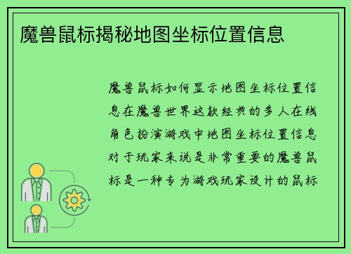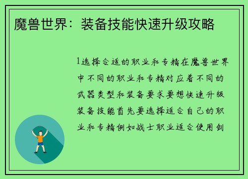 魔兽世界项链特质如何升级 在魔兽世界中,项链特质是玩家角色装备上的重要属性之一。通过升级项链特质,玩家能够提升角色的战斗能力和生存能力。本文将从多个方面详细阐述魔兽世界项链特质的升级方法和策略。 一、了解项链特质 在开始升级项链特质之前,玩家需要对不同的项链特质有一定的了解。每个项链特质都有不同的效果和提升方式。一些特质可能增加角色的伤害输出,而另一些特质则可能增加角色的生命值或防御能力。玩家需要...