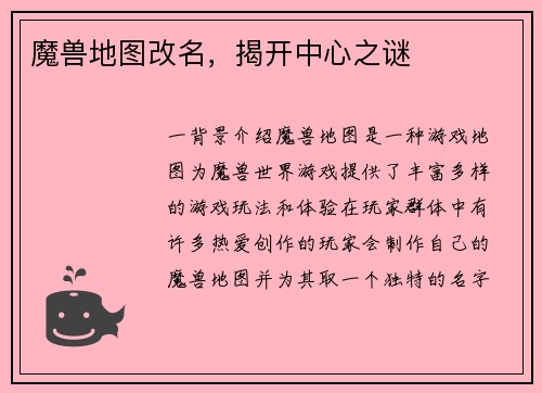 魔兽争霸地图如何修改称号 引言: 魔兽争霸是一款备受玩家喜爱的即时战略游戏,其中地图编辑器是其独特之处之一。通过地图编辑器,玩家可以自定义地图,并添加各种特色元素。修改称号是其中一项常见需求,本文将详细介绍魔兽争霸地图如何修改称号的方法和技巧。 一、了解地图编辑器 魔兽争霸地图编辑器是一个功能强大的工具,它允许玩家自定义地图的各个方面,包括地形、单位、触发器等。在修改称号之前,首先需要熟悉地图编辑...